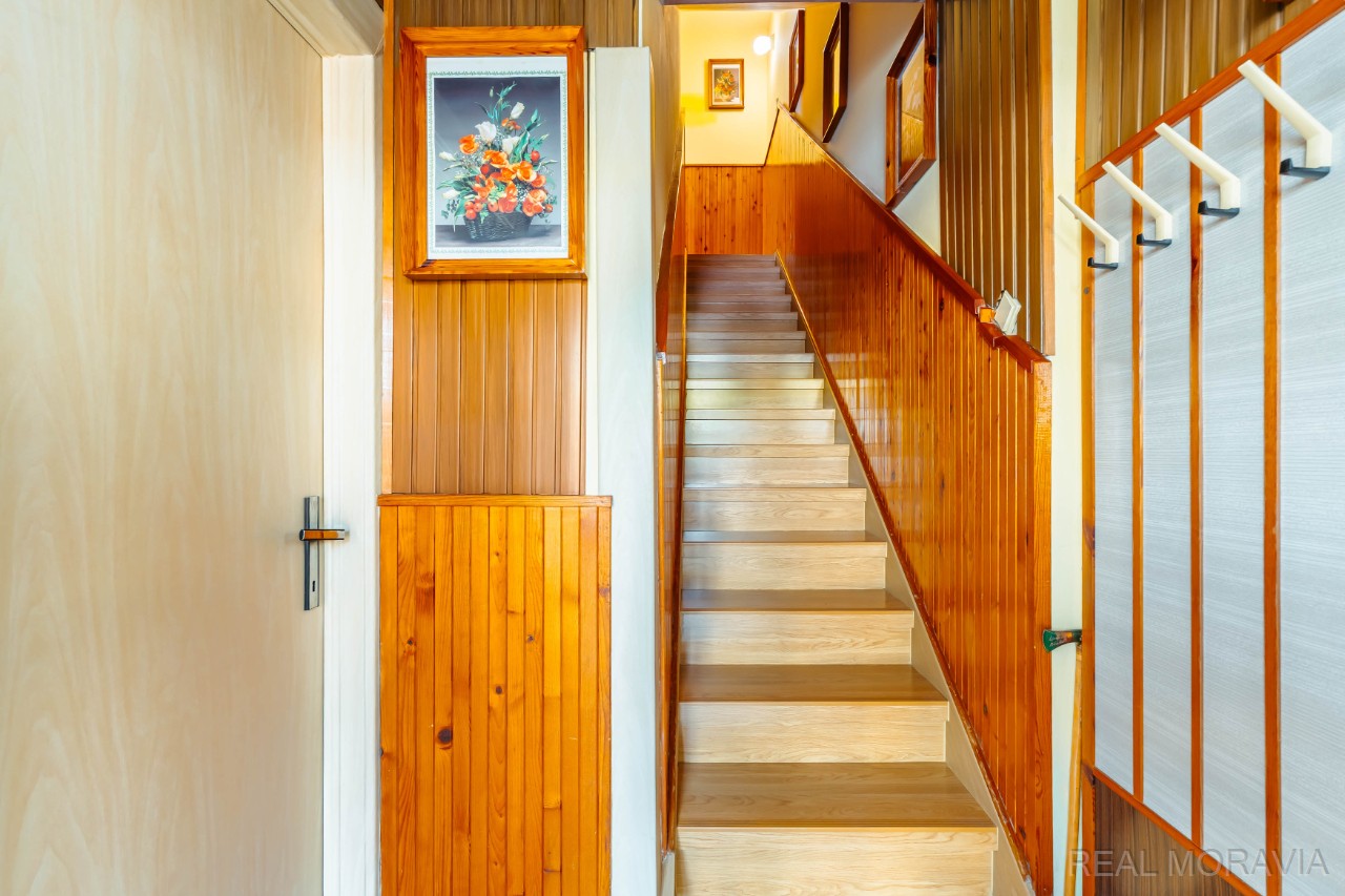 Nabízíme k prodeji prostorný byt 3+1 se zahradou a sklepem v menším cihlovém domě, v osobním vlastnictví, v Lutíně, 8 km od Olomouce. Bytový dům je samostatně stojící se 6 bytovými jednotkami. Každý byt má samostatný vchod z ulice a využívá část pozemku – zahrady. Byt je mezonetový, nachází se v přízemí a 1.patře dvoupodlažního bytového domu bez výtahu a má užitnou plochu 122,5 m² včetně vstupní verandy (2,12 m²) a sklepu v suterénu domu (41,69 m²). Dům byl postaven kolem r. 1940, je podsklepený, má 2 nadzemní podlaží. Dům je zděný a je po částečné revitalizaci: r. 2020 střecha vč. oplechování, r. 2018 nová plastová okna, r. 1986 napojení na plyn. V bytě proběhla výměna plyn. kotle v r. 2012, renovace koupelny a WC r. 2005 (obklady, dlažba, sanita), plovoucí podlaha. Elektro, odpady původní. V bytě se nachází vstupní veranda, předsíň, obývací pokoj, kuchyň s jídelním koutem (plynový sporák s el. troubou, dřez), samostatné WC s oknem, spíž, schodiště do patra. V 1.patře pak 2 průchozí pokoje, koupelna (umyvadlo, vana, místo na pračku, okno). Podlahy- v koupelně a WC dlažba, v obývacím pokoji a kuchyni plovoucí podlaha, v pokojích koberce. Elektroinstalace a vnitřní dveře původní. Dům je napojen na tyto IS – el., plyn, obecní vodovod, obecní kanalizace. Vytápění – ústřední, plynový kotel (vlastní kotelna ve sklepě). Ohřev vody – plynový bojler. Internet optika. V suterénu domu velký sklep (41,69 m²), kde v části je umístěna vlastní kotelna s plynovým kotlem, další část slouží jako úložný prostor. K bytu patří menší oplocená část pozemku, který slouží jako zahrada (cca 84 m²). Na zahradě voda, zásuvka, el. 380. Parkování na pozemku nebo na ploše před pozemkem. Měsíční náklady – 4 390 Kč. Úvěr na revitalizaci splacen. Orientace zahrady Z. Internet, TV anténa. V obci bus, MŠ, ZŠ, obchody, lékaři, pošta, restaurace, hřiště, veškerá občanská vybavenost. Nezáplavová oblast. Volné ihned. Cena vč. právního servisu a provize RK. Majitel si vyhrazuje právo rozhodnout podle svých kritérií, s kým uzavře kupní smlouvu v případě více zájemců. Kompletní informace o stavu nemovitosti obdržíte u makléře, uvedené údaje jsou pouze informativní. Energetický průkaz budovy nebyl vyhotoven, proto je v inzerci uváděna hodnota G.